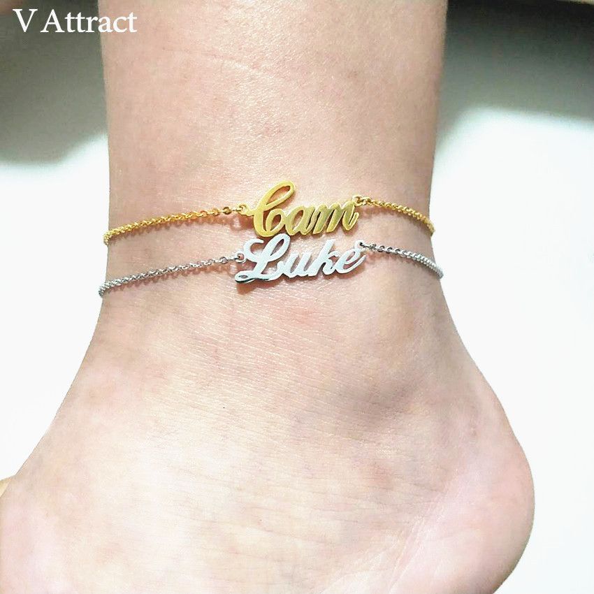 2022 V Attract Personalized Name Anklet Bracelet Best Friends Beach Jewelry Graduation Gift Rose Gold Custom Name Foot Tornozeleira Sh190924 From Hai10 9 06 Dhgate Com